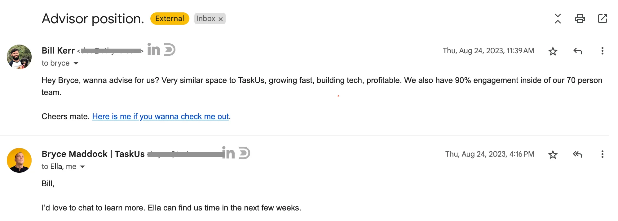 The funny thing is, I actually pitched Bryce in one outbound email. A really good example of why you should always shoot your shot in life and in business.