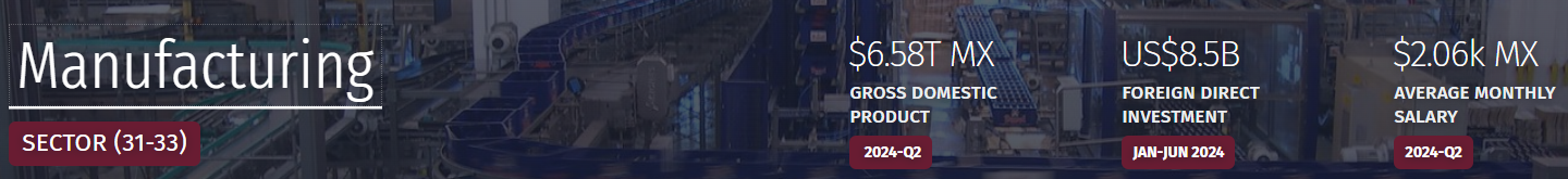 Mexico has a diverse and skilled workforce. Mexico is South America's largest automotive manufacturer, so industries like automotive, electronics, aerospace and IT flourish in Mexico. According to recent reports, in Q2 2024, the manufacturing workforce comprised approximately 21,600 individuals, with an average monthly salary of MXN 2,060.