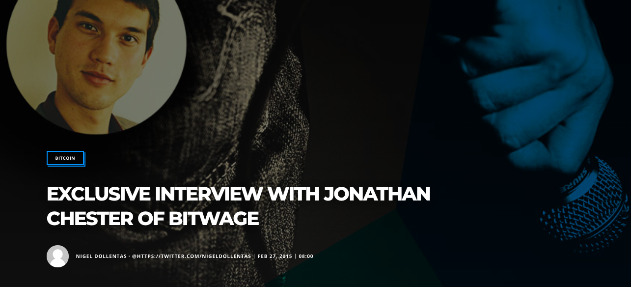 (Bitcoinist) EXCLUSIVE INTERVIEW WITH JONATHAN CHESTER OF BITWAGE Paid Members Public
