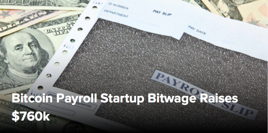 (CoinDesk) Bitcoin Payroll Startup Bitwage Raises $760k Paid Members Public