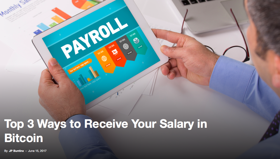By JP Buntinx - June 15, 2017 A lot of people are looking to get a (part of) their salary paid in Bitcoin these days. Given the recent price increase of the popular cryptocurrency, that is not entirely surprising. This process is not necessarily easy, though, despite there being a